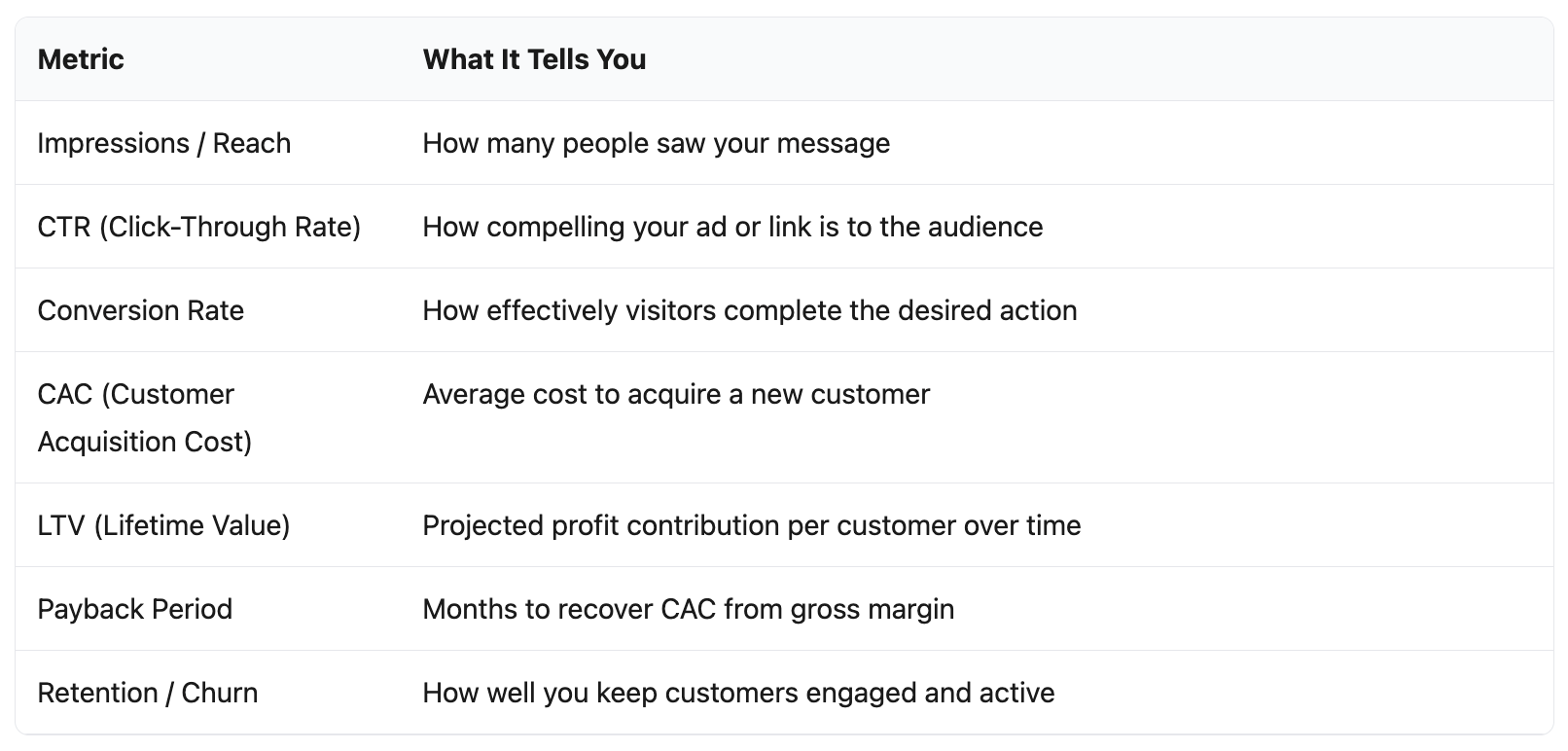Sustainable growth requires discipline on cost and value. CAC, LTV, gross margin, and payback period anchor budget decisions and channel mix.